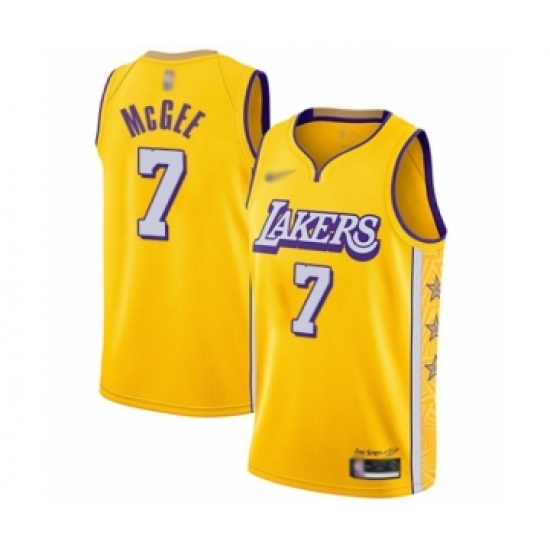 >Men's Los Angeles Lakers #7 JaVale McGee Swingman Gold 2019-20 City Edition Basketball Jersey