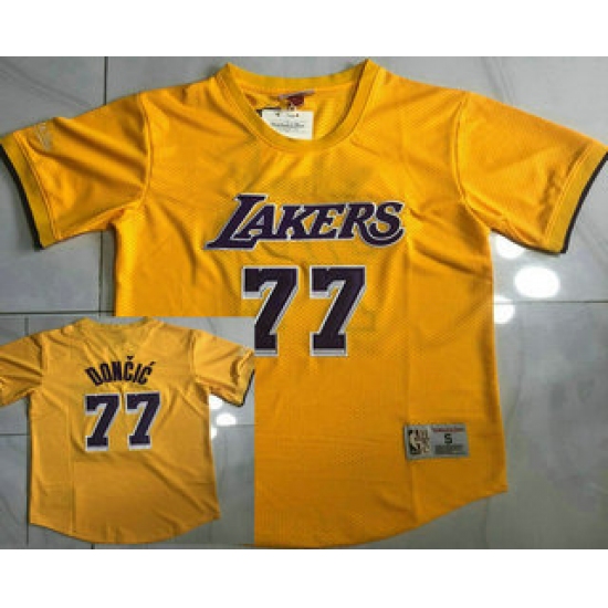 Men's Los Angeles Lakers #77 Luka Doncic Yellow Short Sleeved AU Throwback Jersey