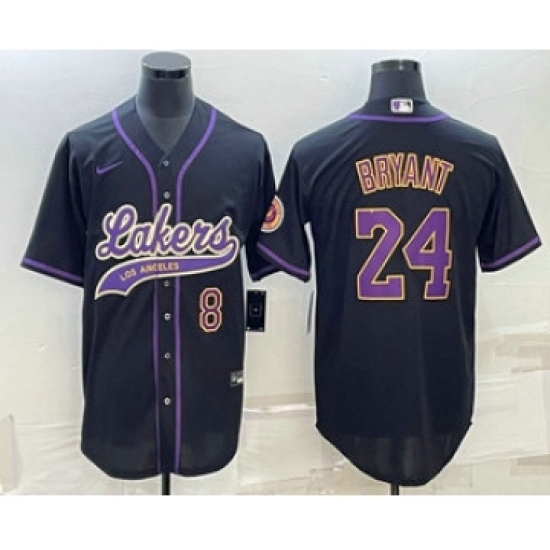 >Men's Los Angeles Lakers #8 #24 Kobe Bryant Number Black With Cool Base Stitched Baseball Jersey