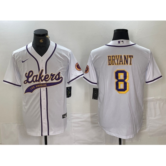 Men's Los Angeles Lakers #8 Kobe Bryant White Cool Base Stitched Baseball Jersey