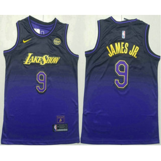 Men's Los Angeles Lakers #9 Bronny James Jr Purple 2024 City Edition Swingman Sponsor Stitched Jersey