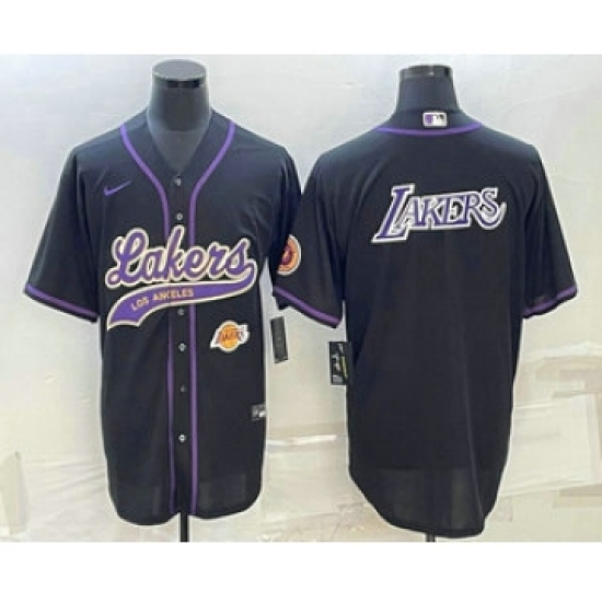 >Men's Los Angeles Lakers Black Big Logo With Cool Base Stitched Baseball Jersey