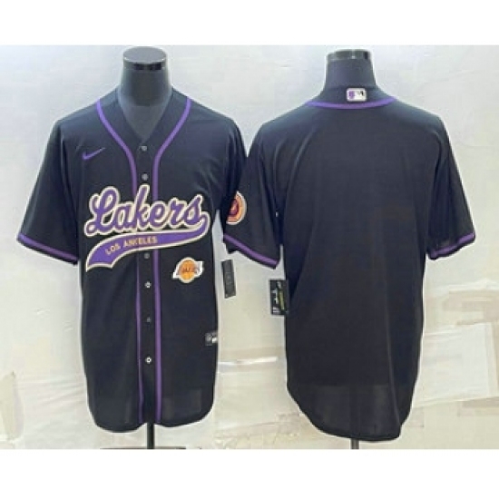Men's Los Angeles Lakers Blank Black With Cool Base Stitched Baseball Jersey