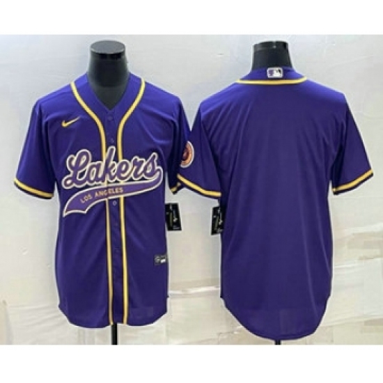 Men's Los Angeles Lakers Blank Purple Cool Base Stitched Baseball Jersey