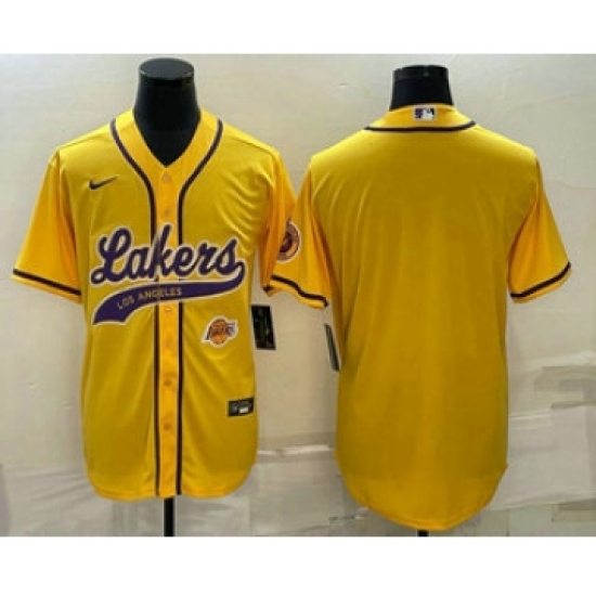 Men's Los Angeles Lakers Yellow Team Big Logo With Cool Base Stitched Baseball Jersey