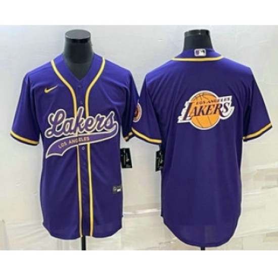Men's Los Angeles Lakers Purple Big Logo Cool Base Stitched Baseball Jersey