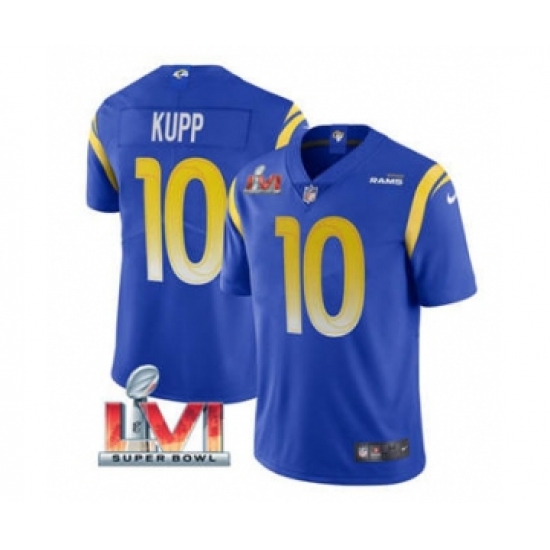 >Men's Los Angeles Rams #10 Cooper Kupp Royal 2022 Super Bowl LVI Vapor Limited Stitched Jersey