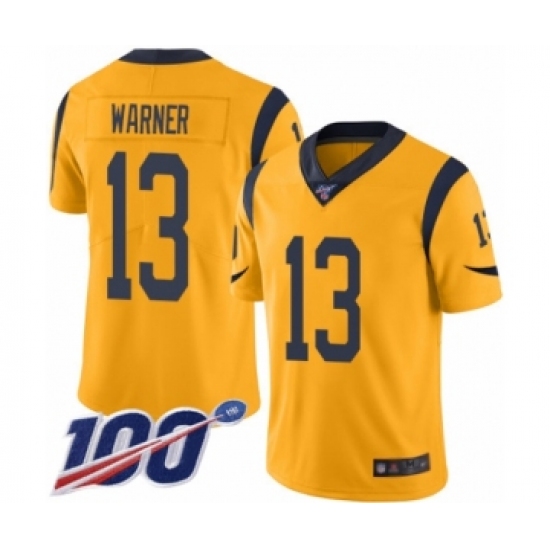 >Men's Los Angeles Rams #13 Kurt Warner Limited Gold Rush Vapor Untouchable 100th Season Football Jersey