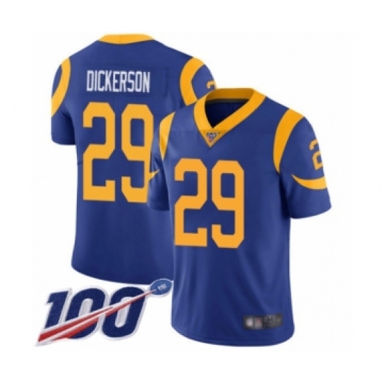 >Men's Los Angeles Rams #29 Eric Dickerson Royal Blue Alternate Vapor Untouchable Limited Player 100th Season Football Jersey