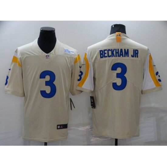 >Men's Los Angeles Rams #3 Odell Beckham Jr. Bone Limited Stitched Jersey