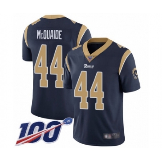>Men's Los Angeles Rams #44 Jacob McQuaide Navy Blue Team Color Vapor Untouchable Limited Player 100th Season Football Jersey