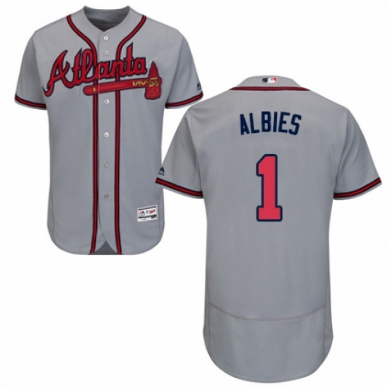 Men's Majestic Atlanta Braves #1 Ozzie Albies Grey Road Flex Base Authentic Collection MLB Jersey