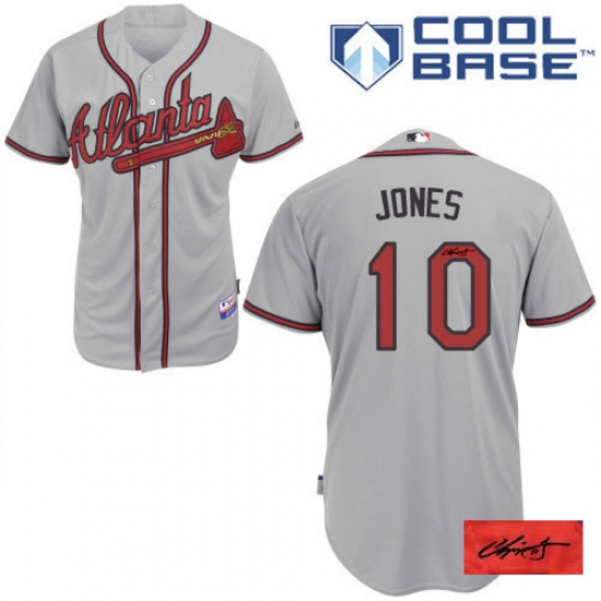 Home>MLB>Atlanta Braves>Chipper Jones>Men's Majestic Atlanta Braves #10 Chipper Jones Authentic Grey Road Cool Base Autographed MLB Jersey