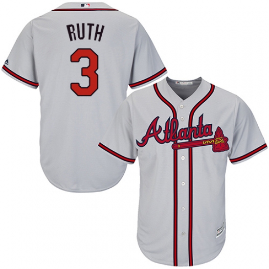 Men's Majestic Atlanta Braves #3 Babe Ruth Replica Grey Road Cool Base MLB Jersey
