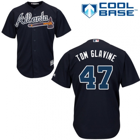 Home>MLB>Atlanta Braves>Tom Glavine>Men's Majestic Atlanta Braves #47 Tom Glavine Replica Blue Alternate Road Cool Base MLB Jersey