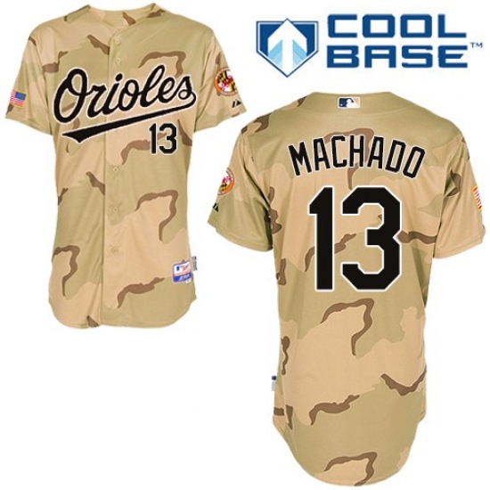 Home>MLB>Baltimore Orioles>Manny Machado>Men's Majestic Baltimore Orioles #13 Manny Machado Replica Camo Commemorative Military Day Cool Base MLB Jersey
