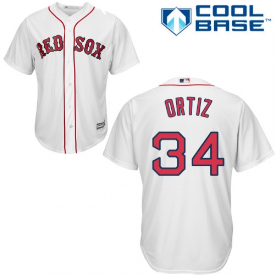 Home>MLB>Boston Red Sox>David Ortiz>Men's Majestic Boston Red Sox #34 David Ortiz Replica White Home Cool Base MLB Jersey