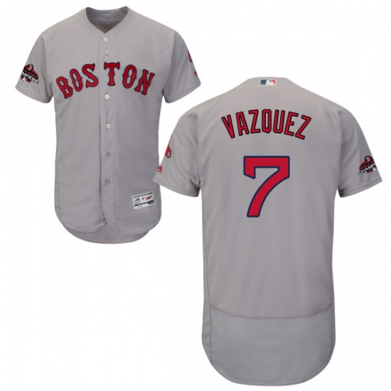 Men's Majestic Boston Red Sox #7 Christian Vazquez Grey Road Flex Base Authentic Collection 2018 World Series Champions MLB Jersey