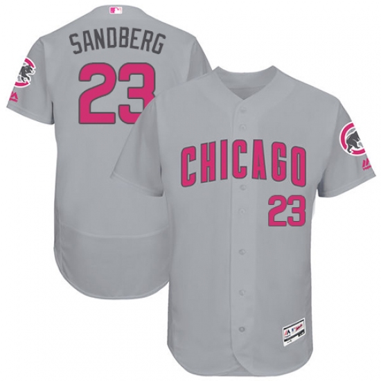 Men's Majestic Chicago Cubs #23 Ryne Sandberg Grey Mother's Day Flexbase Authentic Collection MLB Jersey