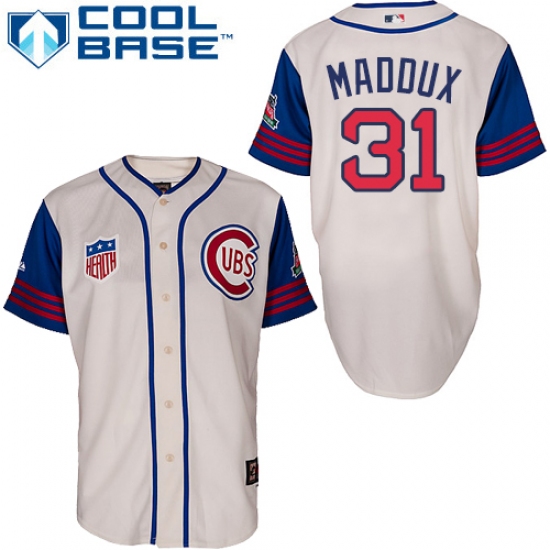 Men's Majestic Chicago Cubs #31 Greg Maddux Authentic Cream/Blue 1942 Turn Back The Clock MLB Jersey
