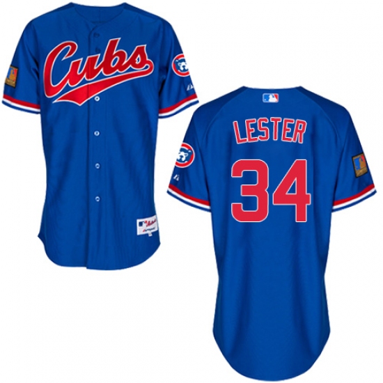 Home>MLB>Chicago Cubs>Jon Lester>Men's Majestic Chicago Cubs #34 Jon Lester Authentic Blue 1994 Turn Back The Clock MLB Jersey