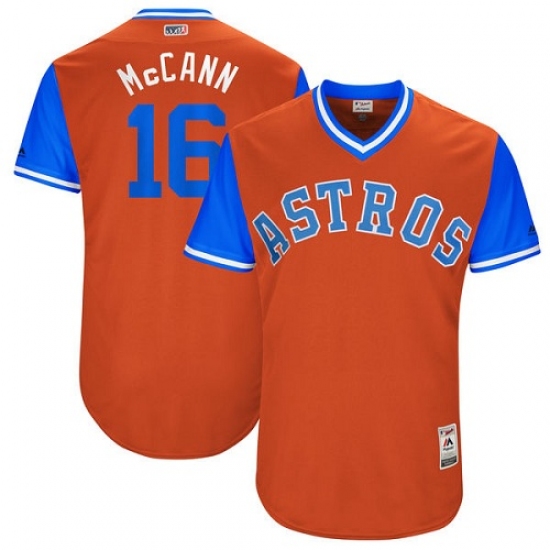 Men's Majestic Houston Astros #16 Brian McCann "McCann" Authentic Orange 2017 Players Weekend MLB Jersey