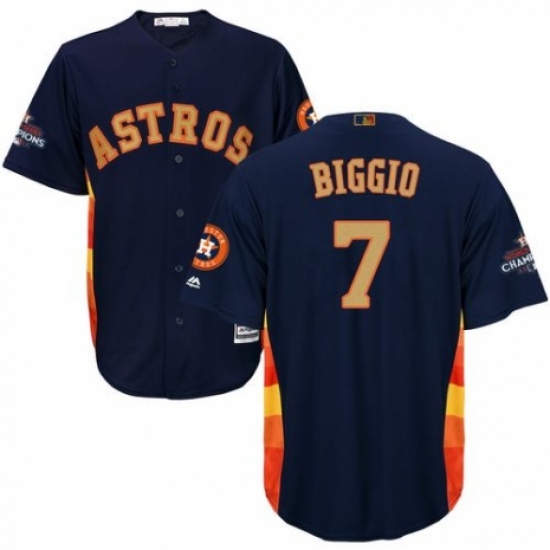>Men's Majestic Houston Astros #7 Craig Biggio Replica Navy Blue Alternate 2018 Gold Program Cool Base MLB Jersey