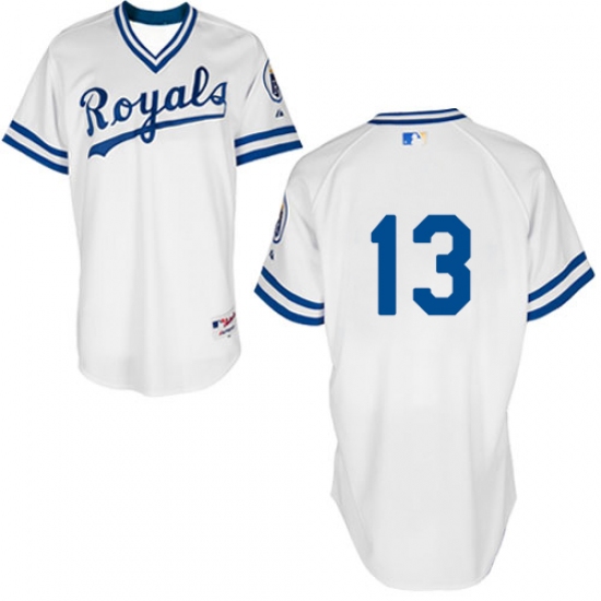 Men's Majestic Kansas City Royals #13 Salvador Perez Authentic White 1974 Turn Back The Clock MLB Jersey