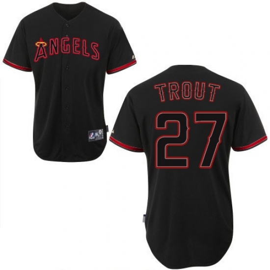 Men's Majestic Los Angeles Angels of Anaheim #27 Mike Trout Replica Black Fashion MLB Jersey