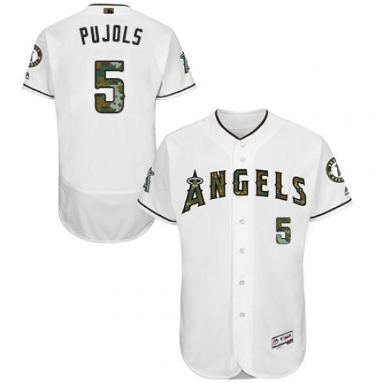 Men's Majestic Los Angeles Angels of Anaheim #5 Albert Pujols Authentic White 2016 Memorial Day Fashion Flex Base MLB Jersey