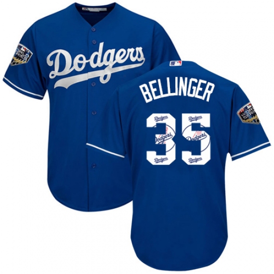 >Men's Majestic Los Angeles Dodgers #35 Cody Bellinger Authentic Royal Blue Team Logo Fashion Cool Base 2018 World Series MLB Jersey