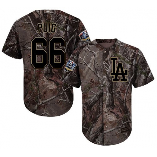Men's Majestic Los Angeles Dodgers #66 Yasiel Puig Authentic Camo Realtree Collection Flex Base 2018 World Series MLB Jerse