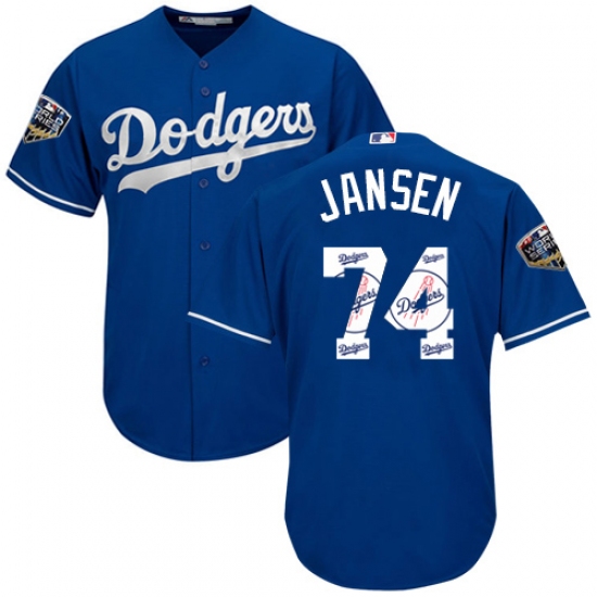 Men's Majestic Los Angeles Dodgers #74 Kenley Jansen Authentic Royal Blue Team Logo Fashion Cool Base 2018 World Series MLB Jersey