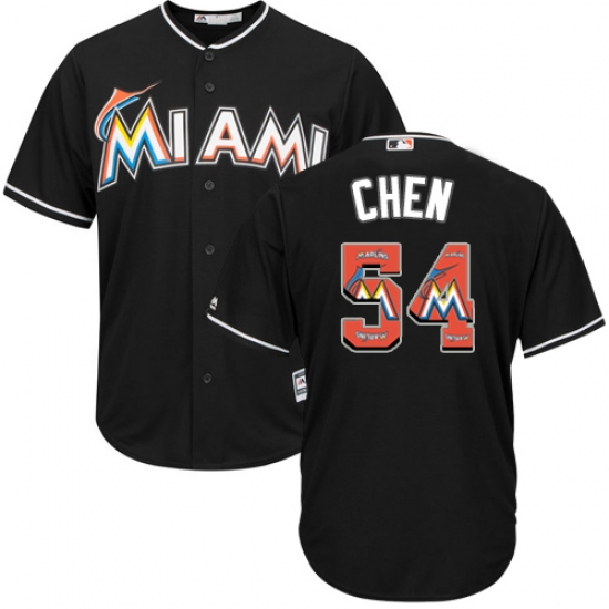 Men's Majestic Miami Marlins #54 Wei-Yin Chen Authentic Black Team Logo Fashion Cool Base MLB Jersey