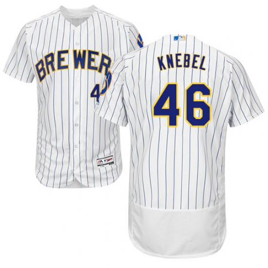 Home>MLB>Milwaukee Brewers>Corey Knebel>Men's Majestic Milwaukee Brewers #46 Corey Knebel White/Royal Flexbase Authentic Collection MLB Jersey