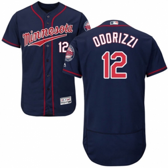 >Men's Majestic Minnesota Twins #12 Jake Odorizzi Authentic Navy Blue Alternate Flex Base Authentic Collection MLB Jersey