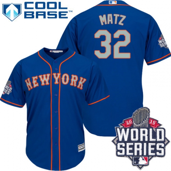 Men's Majestic New York Mets #32 Steven Matz Replica Royal Blue Alternate Road Cool Base 2015 World Series MLB Jersey