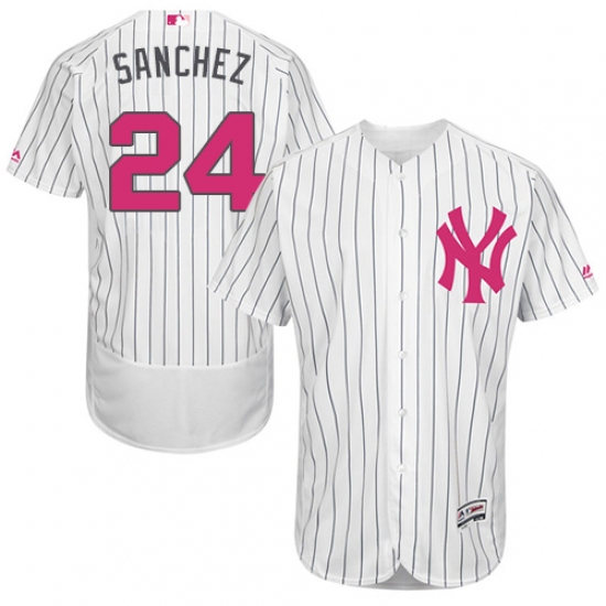 Home>MLB>New York Yankees>Gary Sanchez>Men's Majestic New York Yankees #24 Gary Sanchez Authentic White 2016 Mother's Day Fashion Flex Base MLB Jersey
