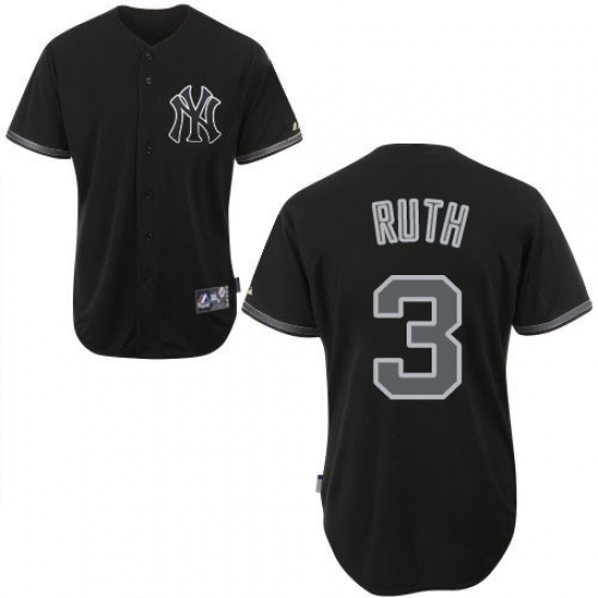 Men's Majestic New York Yankees #3 Babe Ruth Replica Black Fashion MLB Jersey