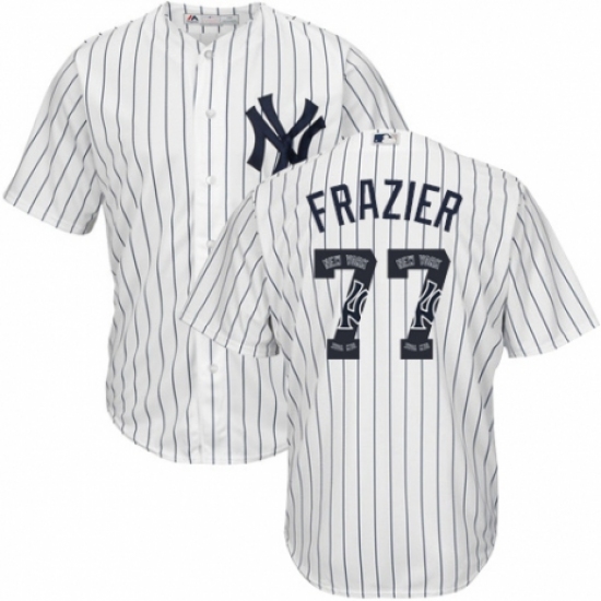 >Men's Majestic New York Yankees #77 Clint Frazier Authentic White Team Logo Fashion MLB Jersey