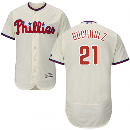 Men's Majestic Philadelphia Phillies #21 Clay Buchholz Cream Flexbase Authentic Collection MLB Jersey