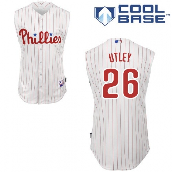 Home>MLB>Philadelphia Phillies>Chase Utley>Men's Majestic Philadelphia Phillies #26 Chase Utley Authentic White/Red Strip Vest Style MLB Jersey