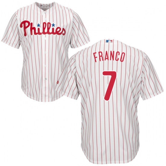 Men's Majestic Philadelphia Phillies #7 Maikel Franco Replica White/Red Strip Home Cool Base MLB Jersey