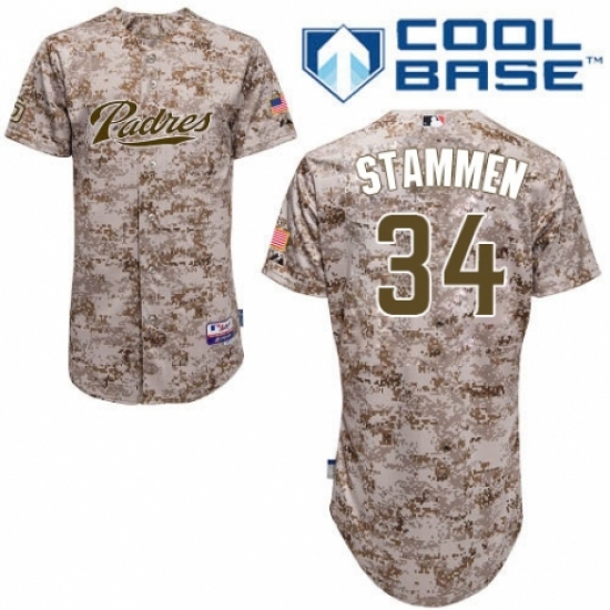 >Men's Majestic San Diego Padres #34 Craig Stammen Authentic Camo Alternate 2 Cool Base MLB Jersey