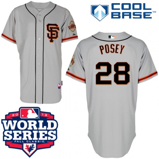 Home>MLB>San Francisco Giants>Buster Posey>Men's Majestic San Francisco Giants #28 Buster Posey Authentic Grey Road 2 Cool Base 2012 World Series Patch MLB Jersey