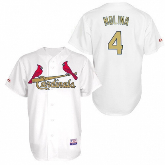 >Men's Majestic St. Louis Cardinals #4 Yadier Molina Replica White Gold No. MLB Jersey