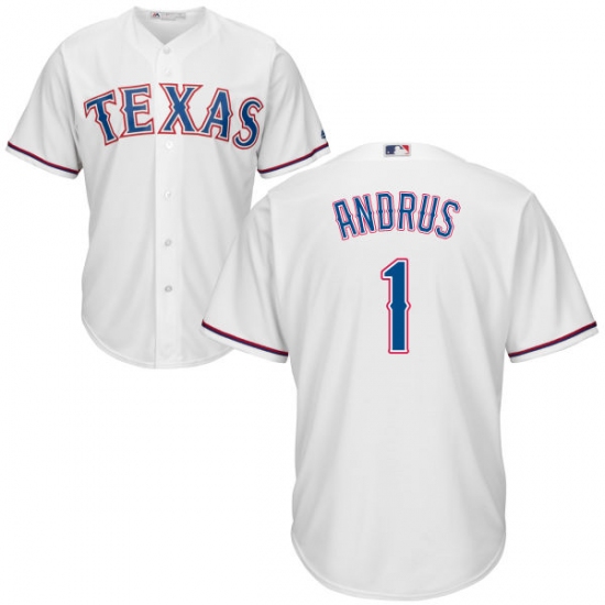 Men's Majestic Texas Rangers #1 Elvis Andrus Replica White Home Cool Base MLB Jersey
