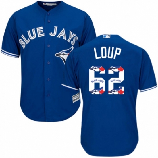 Men's Majestic Toronto Blue Jays #62 Aaron Loup Authentic Blue Team Logo Fashion MLB Jersey