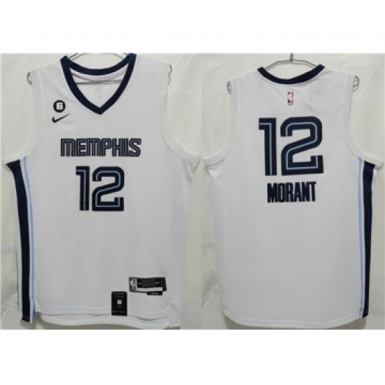 >Men's Memphis Grizzlies #12 Ja Morant White With NO.6 Patch Stitched Jersey