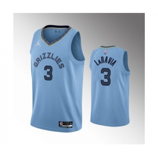 Men's Memphis Grizzlies #3 Jake LaRavia 75th Anniversary Statement Edition Light Blue Stitched Basketball Jersey
